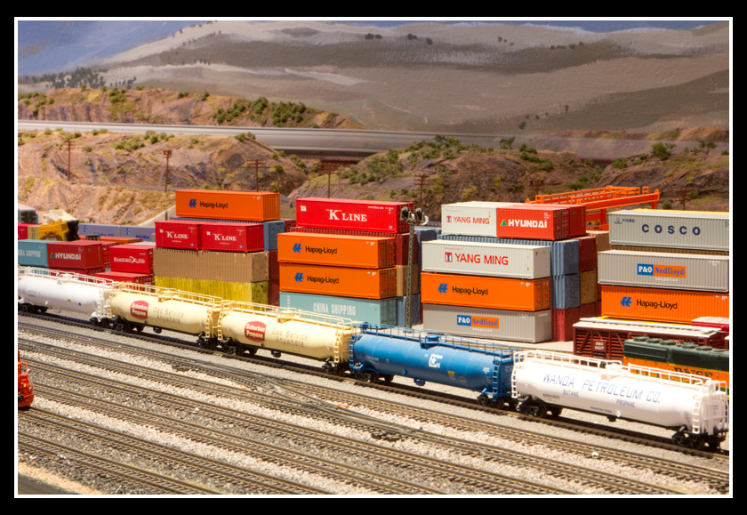 The layout is freelanced, although many of the hills, mountains and cuttings look like those in the North West of America. The Railroad modelled is after the BNSF and Ron quite simply says this is because the first locomotive he ever bought was a BNSF unit.