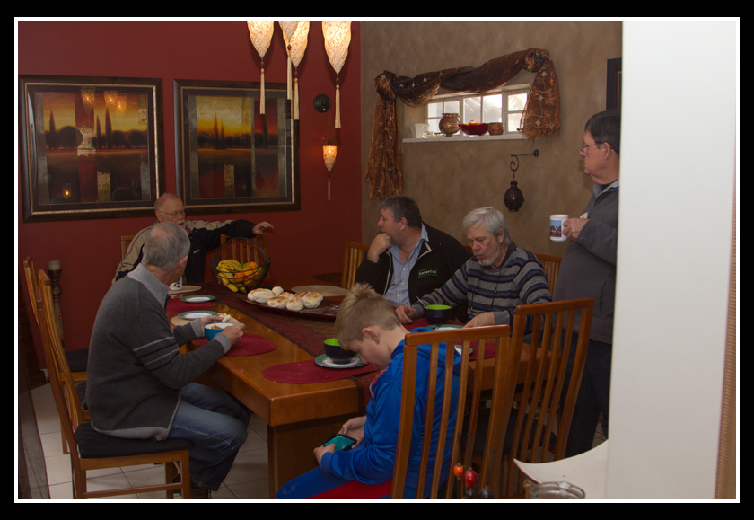 As has become the norm, everyone broke for a truly sumptuous beverage and meal with Ron’s wife cooking a lovely soup which because of the terrible cold snap over the weekend, was just what was needed.