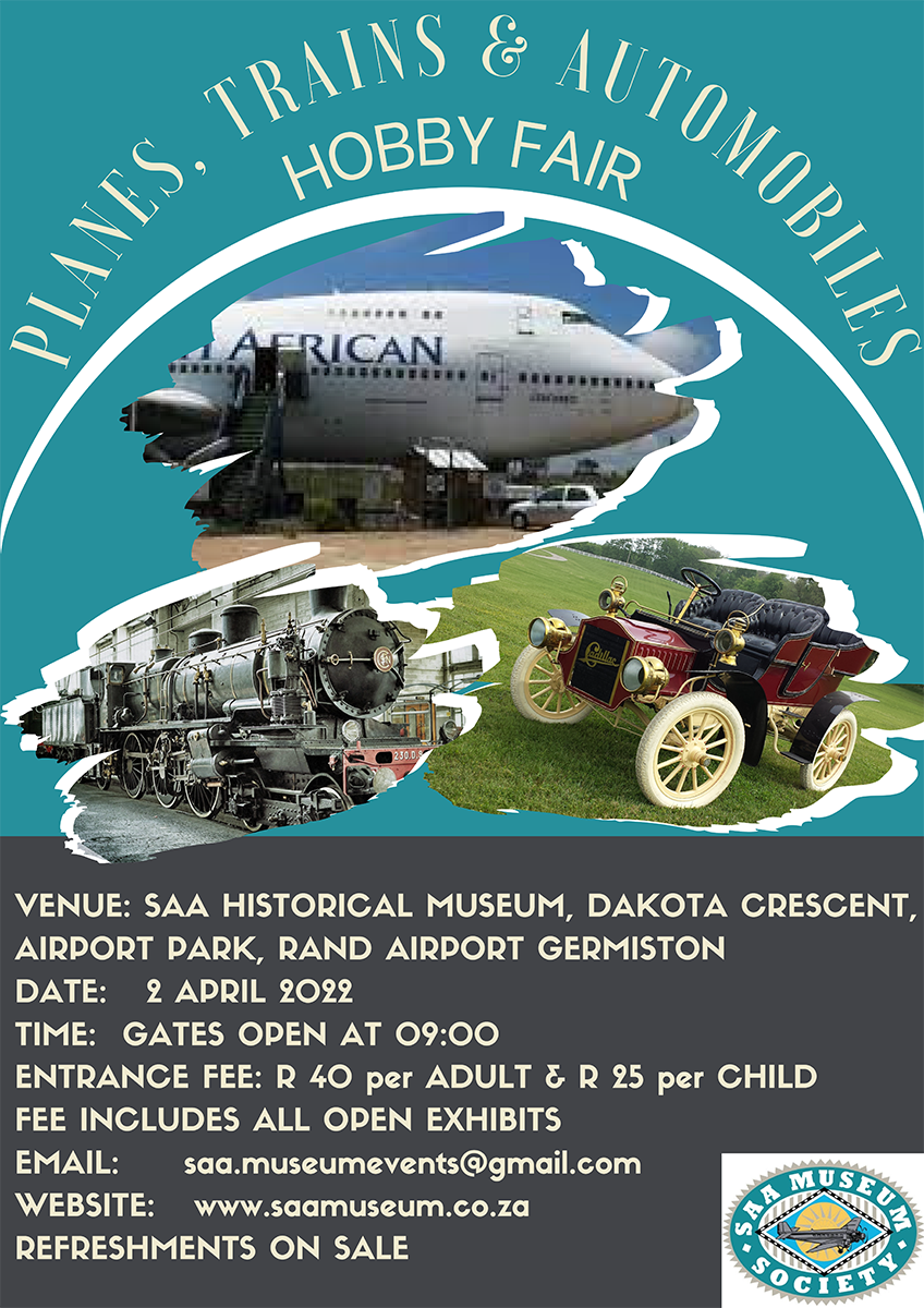 A week after the Toyz 4 Boyz event at Rand airport, EMRIG will also be participating at this years Planes, Trains & Automobiles Hobby Fair on the 2nd of April 2022. The event will be at the SAA Historical Museum, Dakota Crescent, Airport Park, Rand Airport, Germiston.